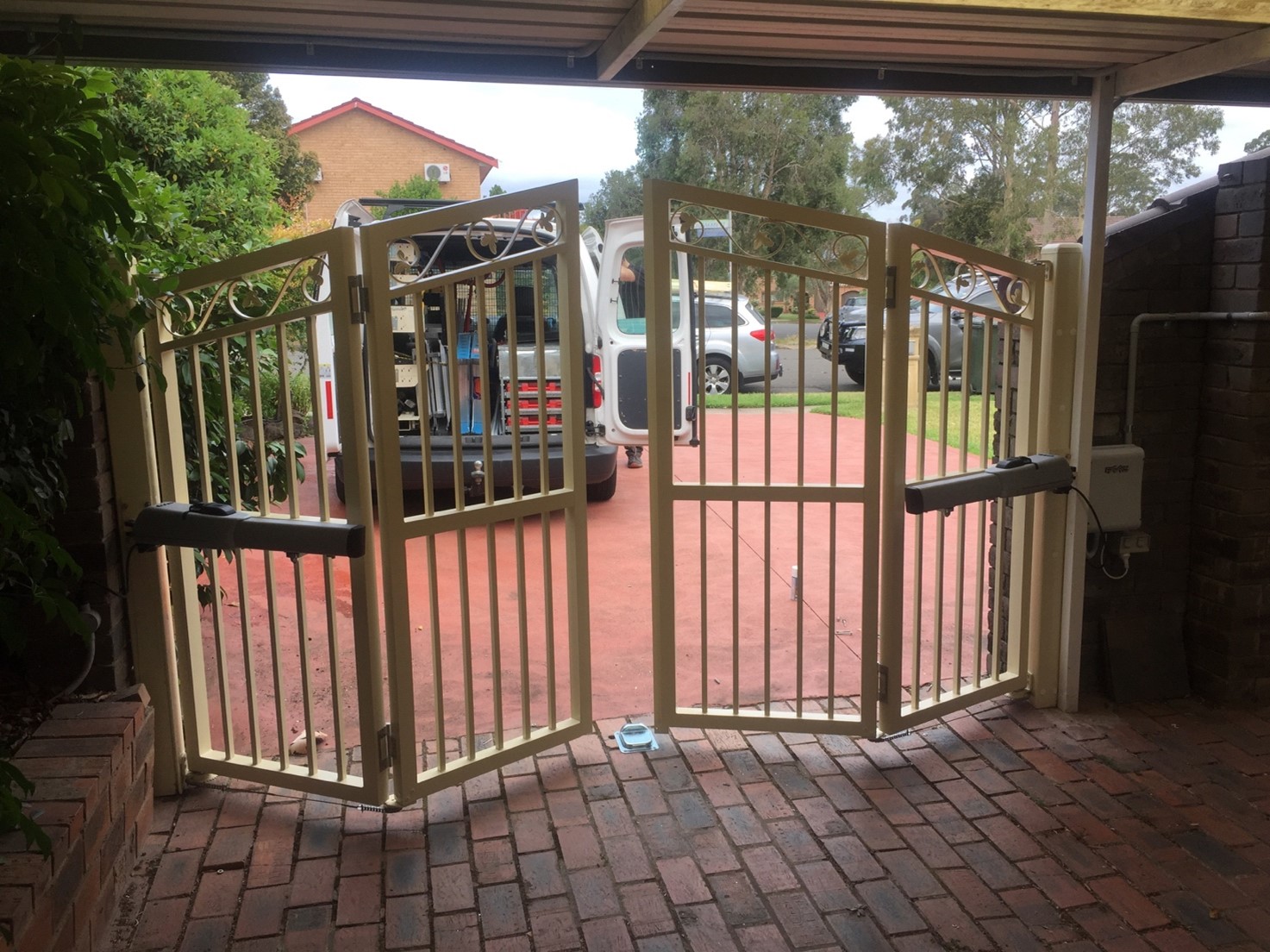 Bi-folding gates open and close faster than sliding or swing gates and require less space to operate, making them ideal for compact driveways or commercial entrances.